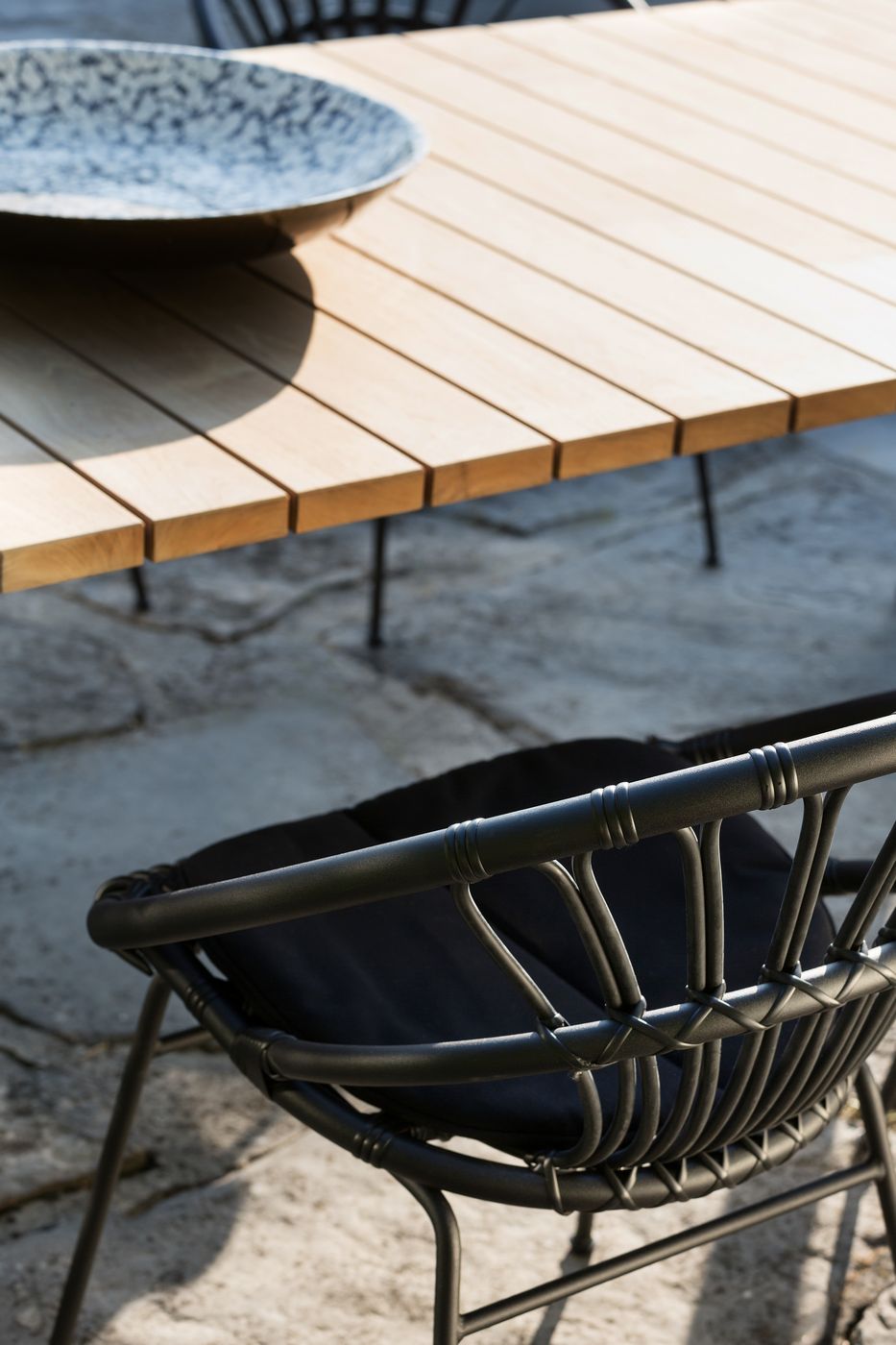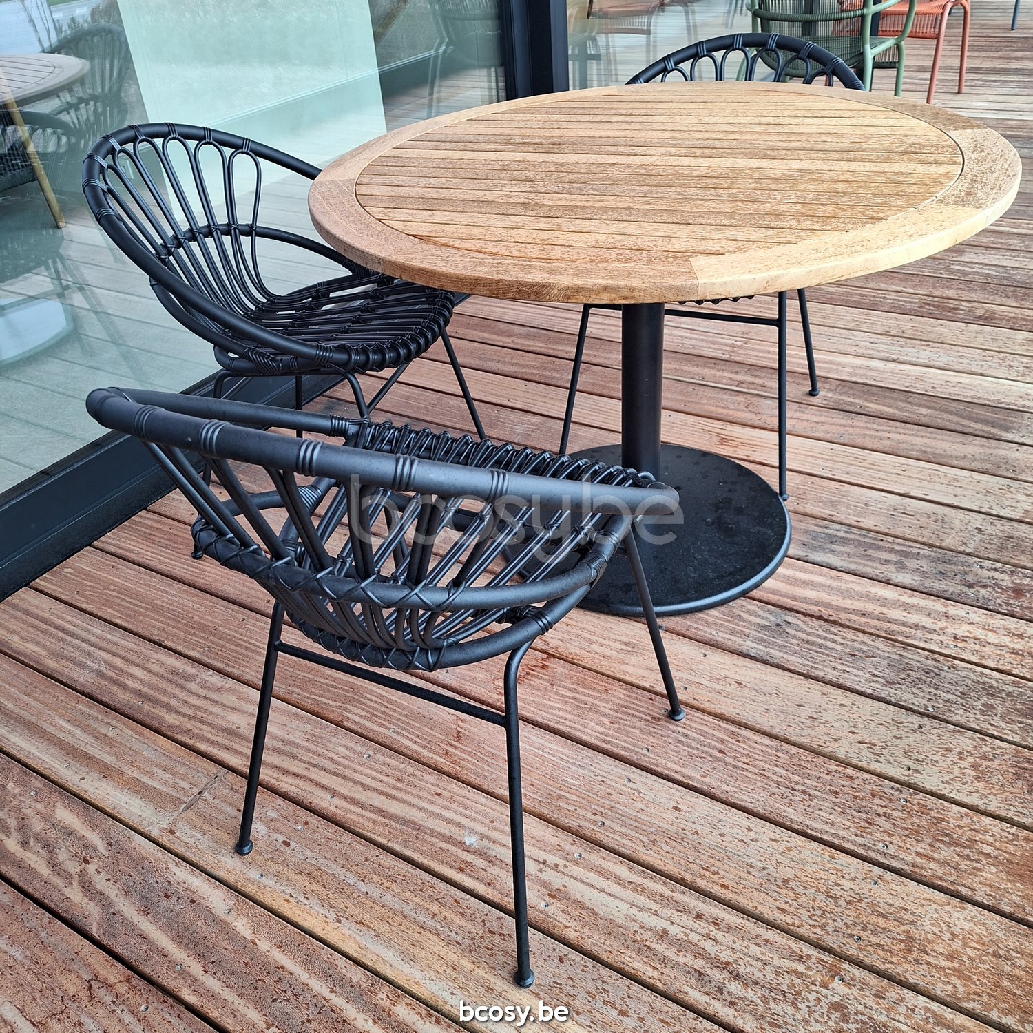 Material: Polyethylene wicker on an aluminium frame with an epoxy and black powder coated steel frame.