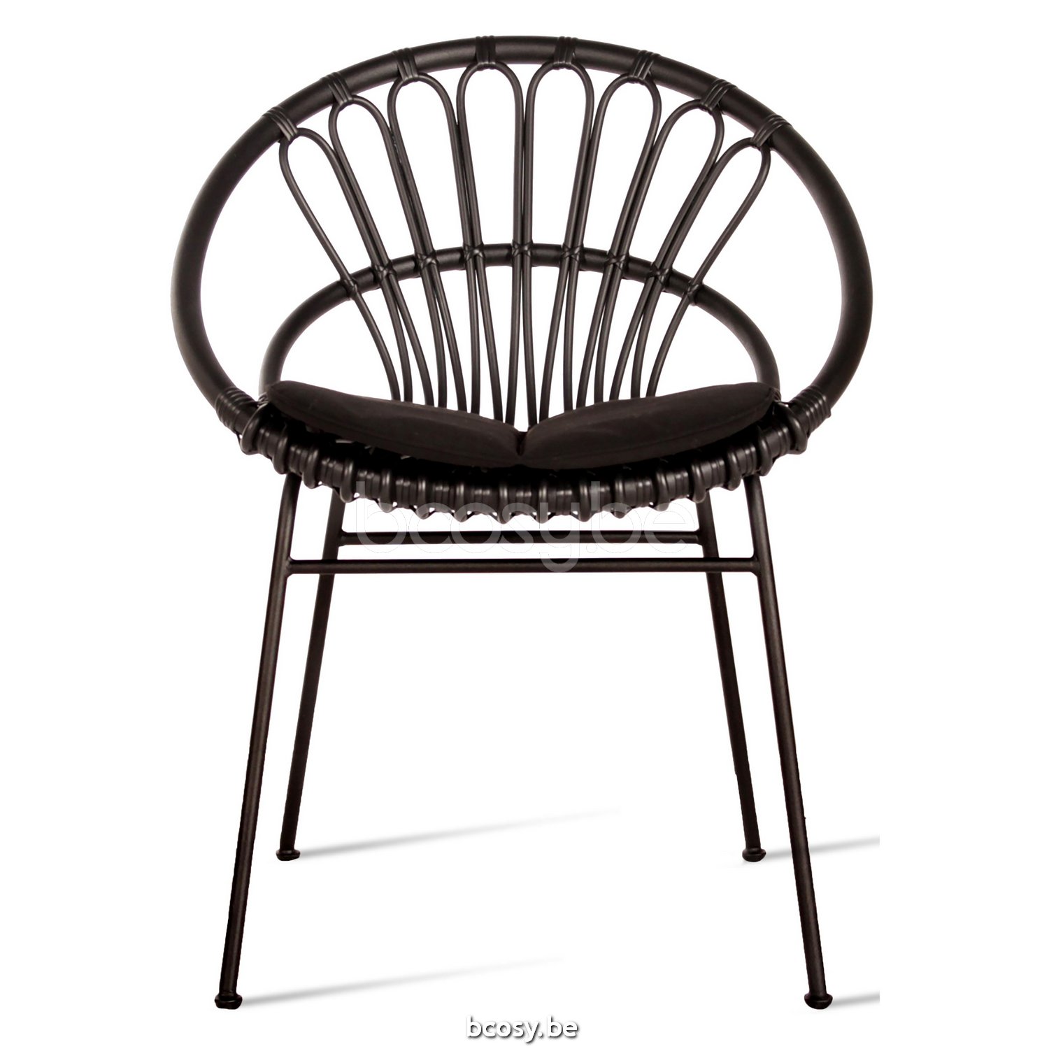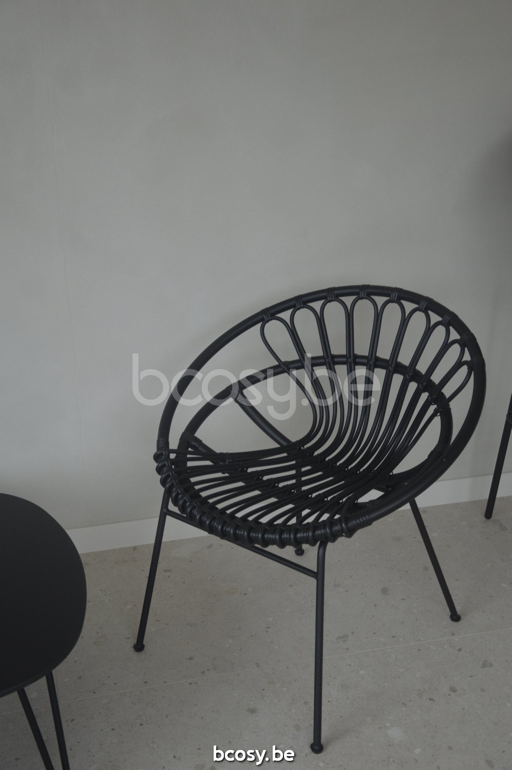 Français: Vincent Sheppard Roxanne Chaise Cadre en Acier Noir Cordon en osier Noir Polyéthylène