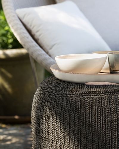 Vincent Sheppard Otto Holzkohle Beistelltisch Otto Hocker Anthrazit-Kohle Gehäkelte Kordel Polypropylen