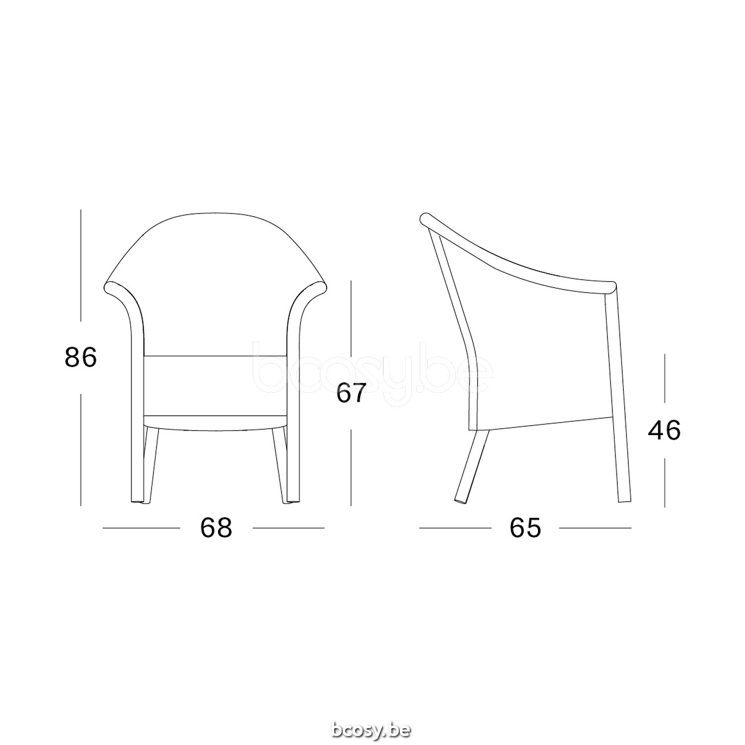 Afmetingen/Dimensions/Dimensionen: L=68 cm B=70 cm H=82 cm SH=45 cm AH=71 cm