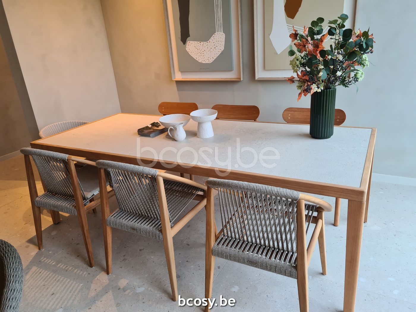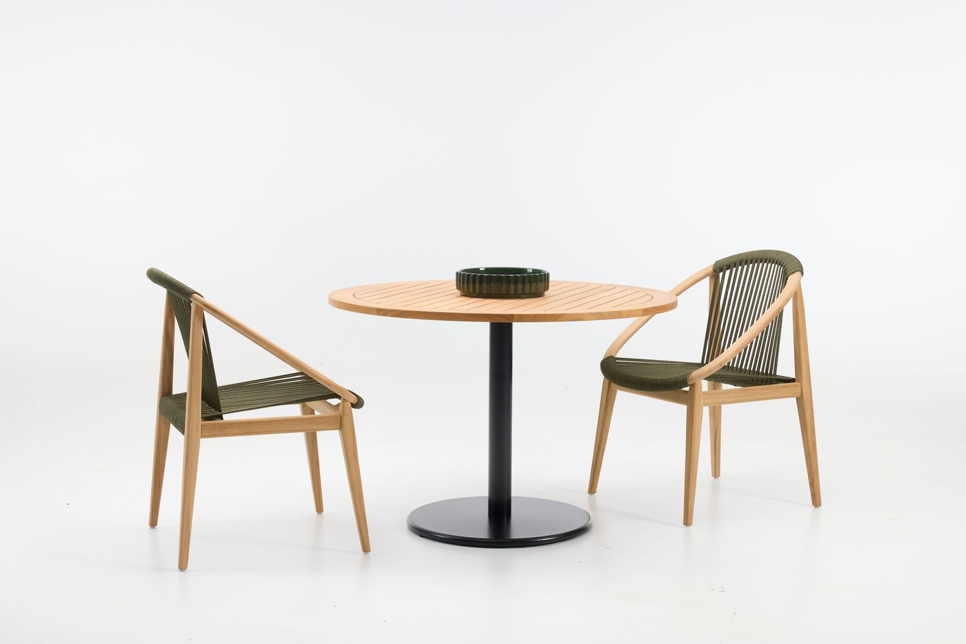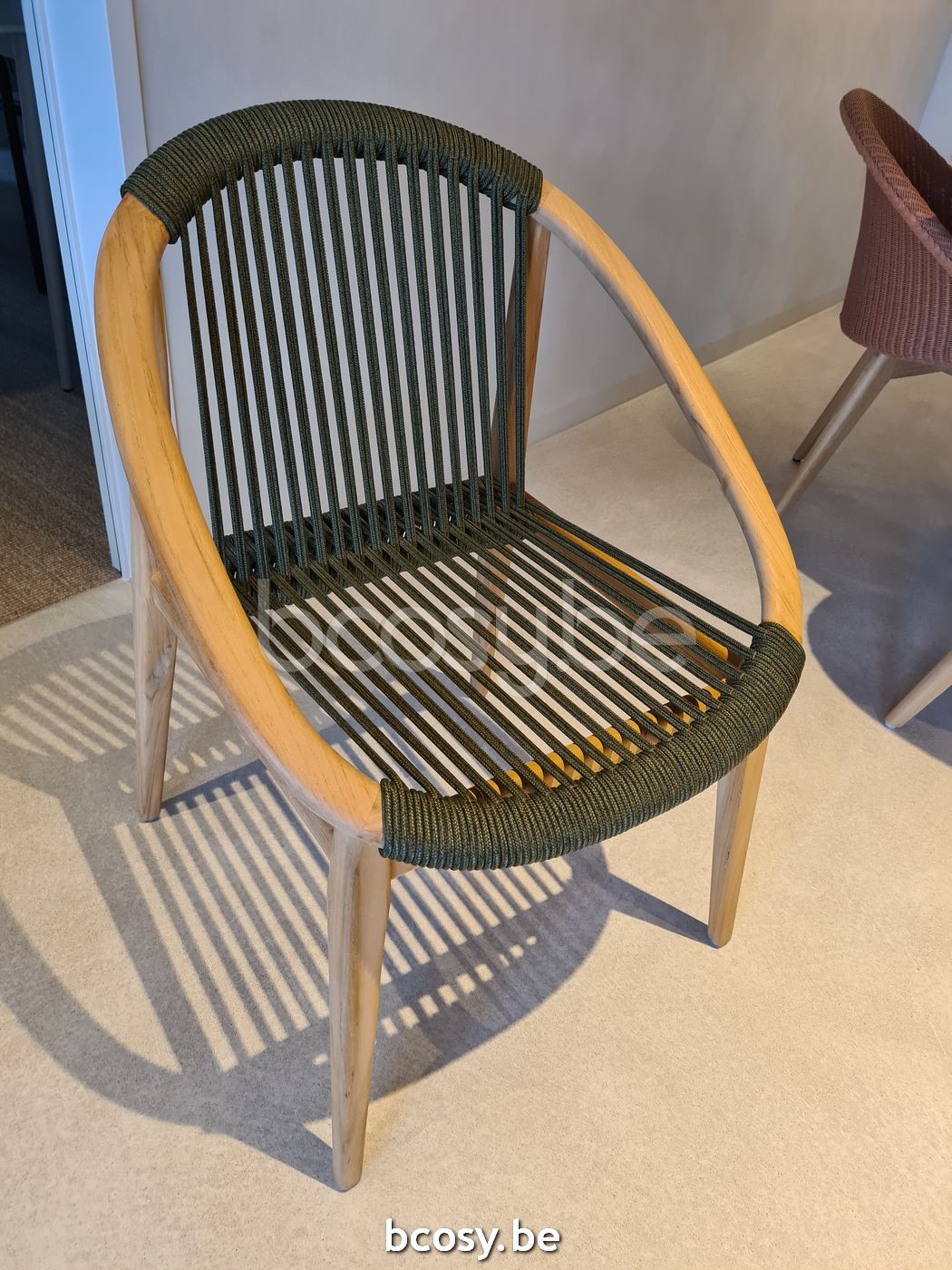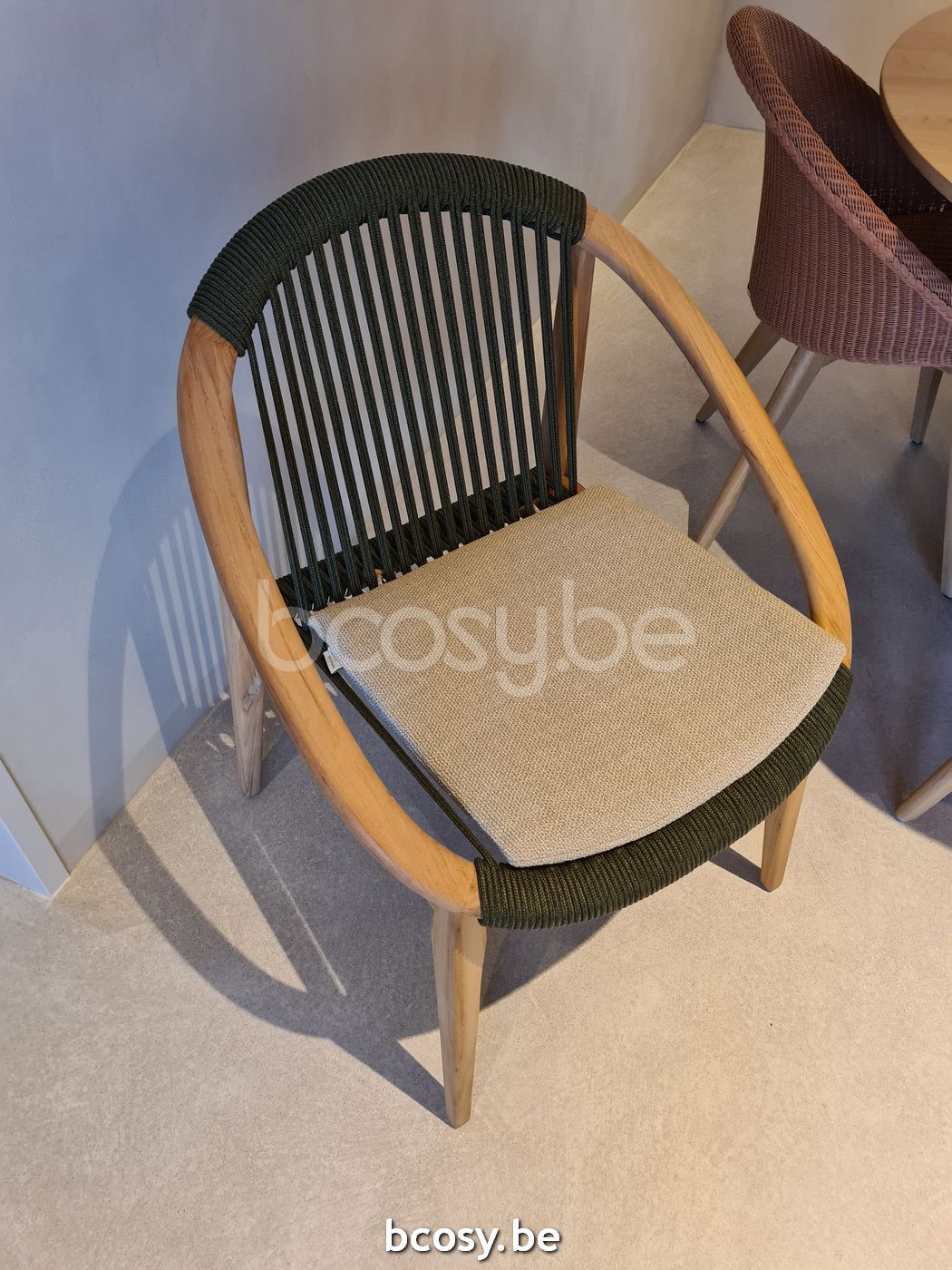 English: Vincent Sheppard Frida Dining Chair Untreated Teak frame Dark Green Rope Polypropylene