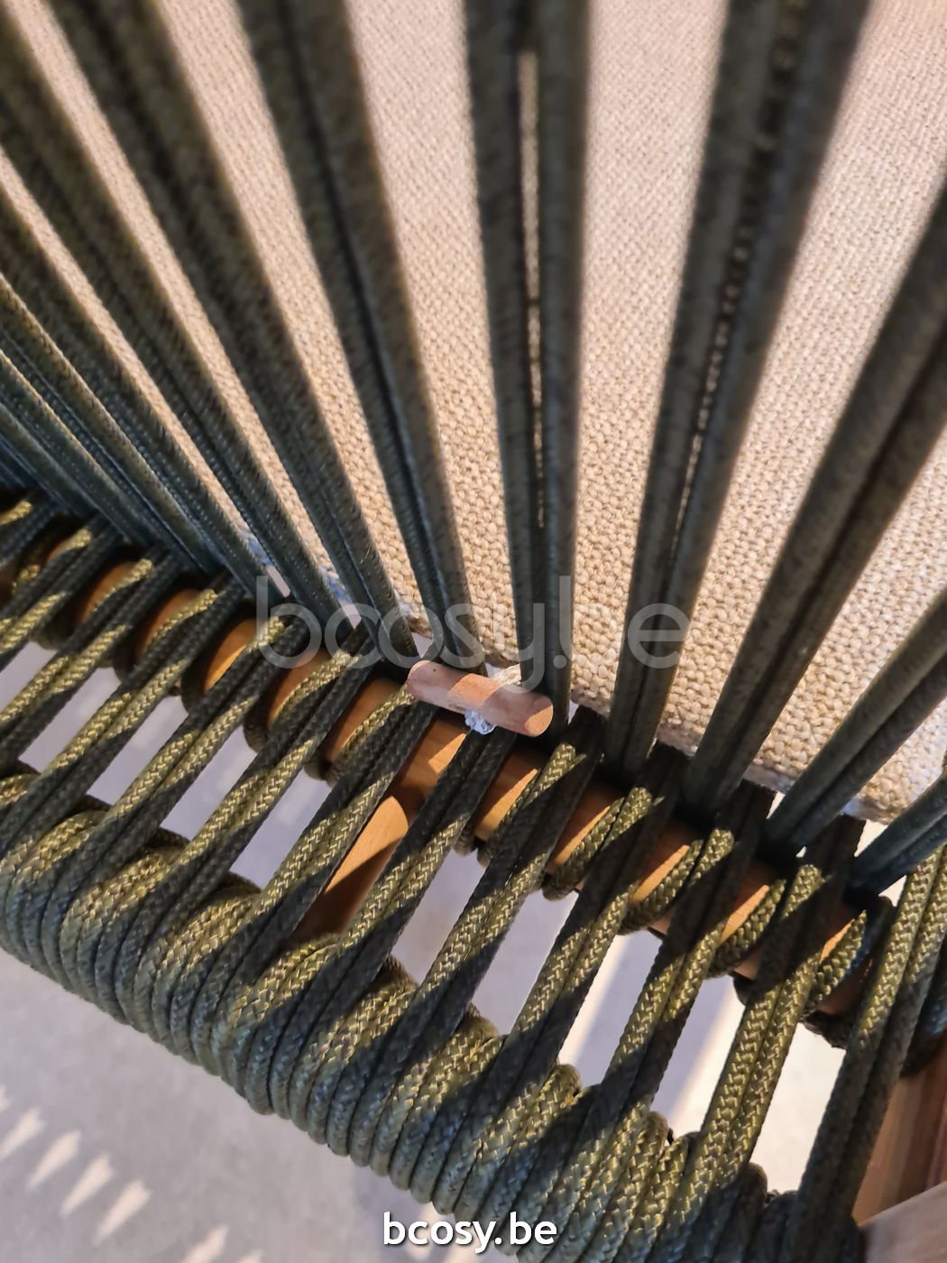 Matériel: Corde en polypropylène sur un cadre en teck non traité. Patins en nylon blanc.