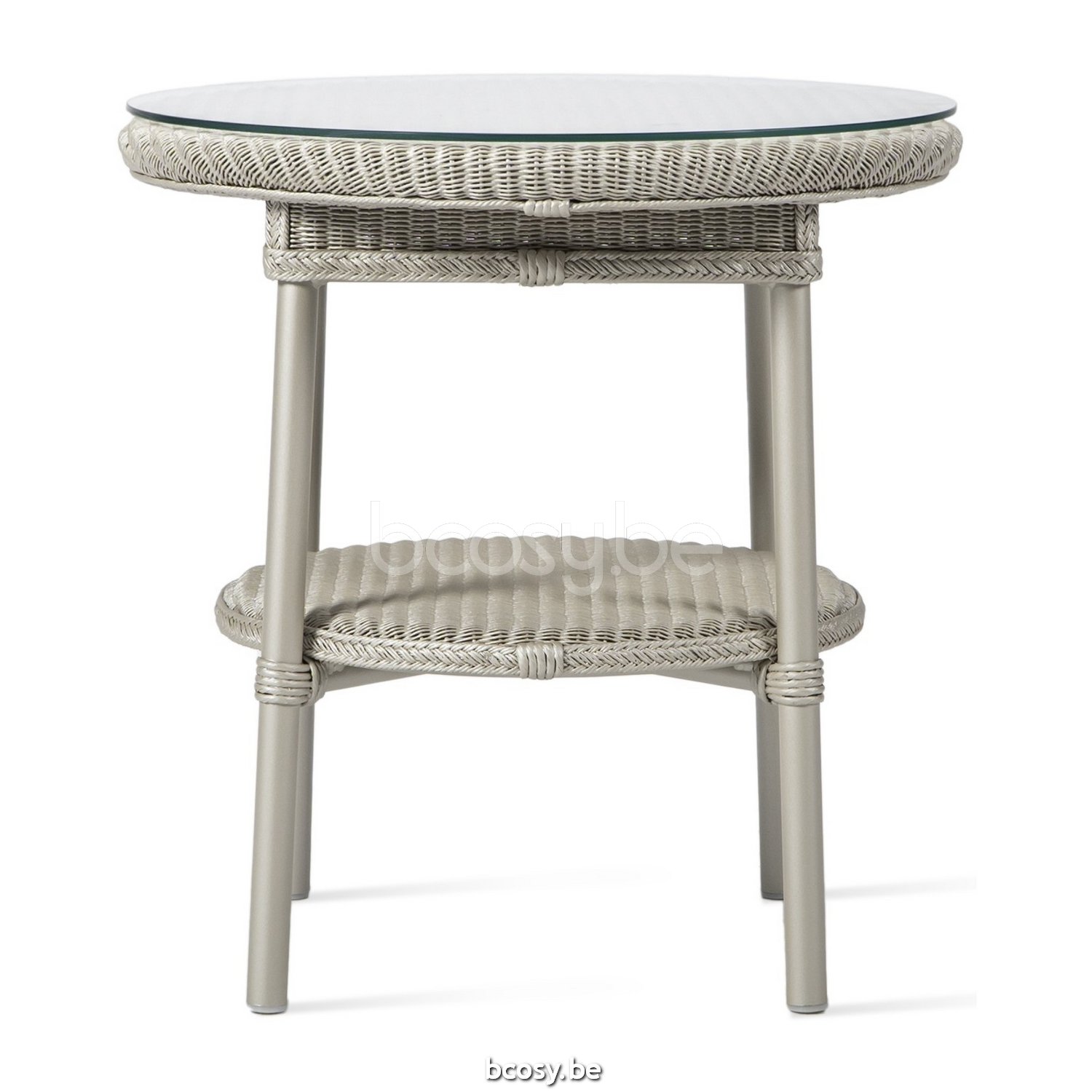 Materiaal: Bijzettafel met buitenbehandeld Lloyd Loom vlechtwerk op Aluminium frame. Meubels moeten binnen worden opgeborgen bij vochtig en koud weer. Optioneel glazen blad verkrijgbaar.