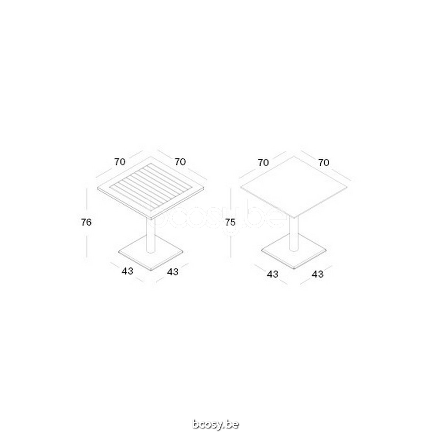 Afmetingen/Dimensions/Dimensionen: L=70 cm B=70 cm H=76/75 cm SD=43x43 cm