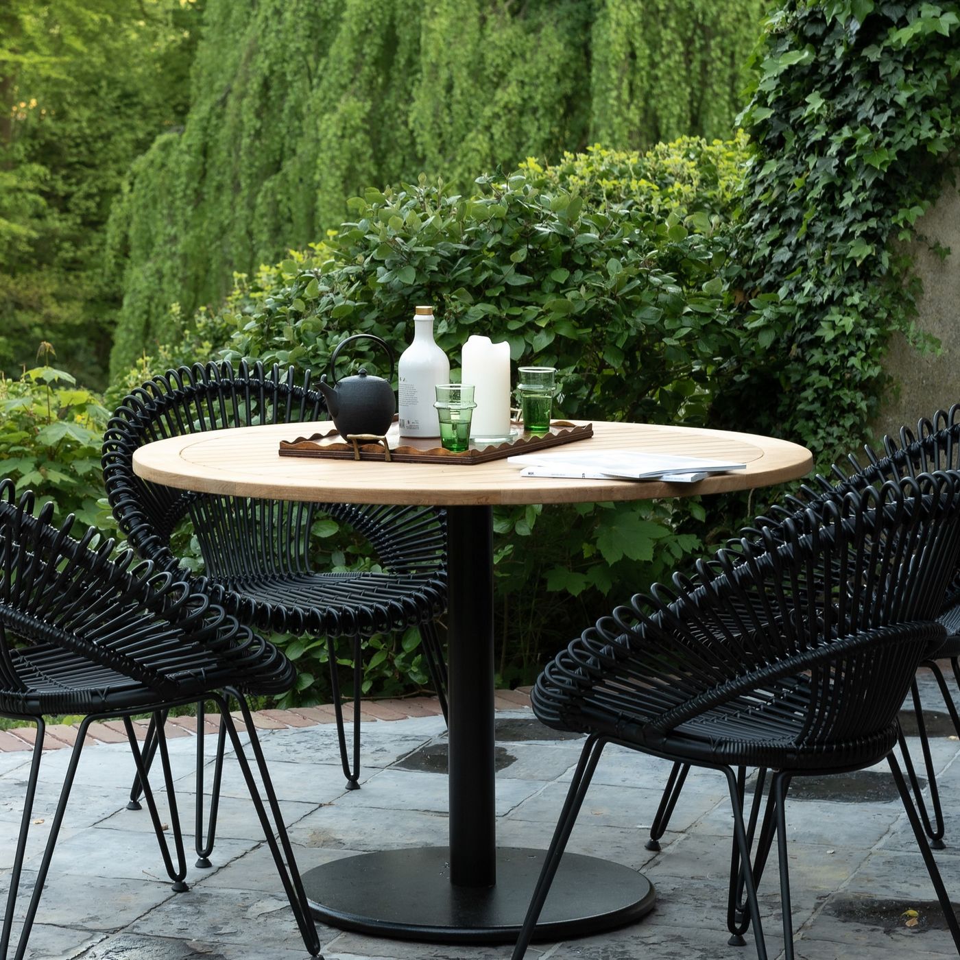 English: Vincent Sheppard Ronda Round Bistro Table Round Black Steel frame Untreated Teak top 20mm