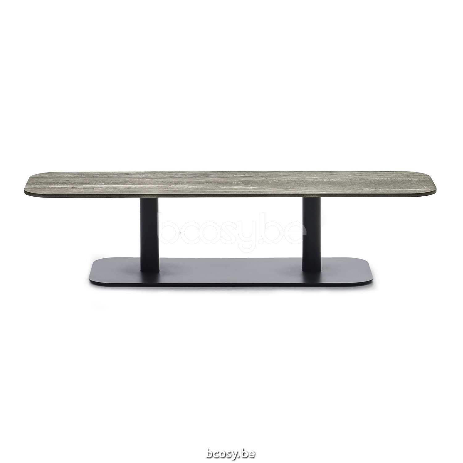 Deutsch: Vincent Sheppard Kodo Garten Beistelltisch 129x45 Rahmen aus Fossil Grau Aluminium Tischplatte Flint Keramik