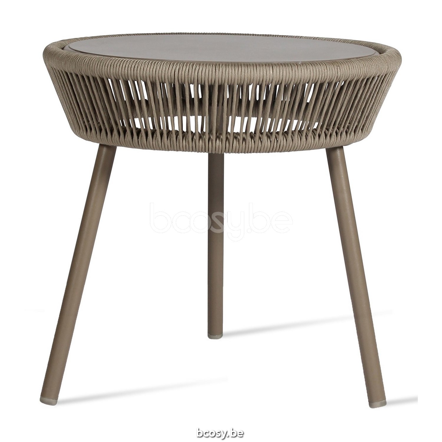 Vincent Sheppard LOOP Beistelltisch Loop Runder Garten Beistelltisch Rahmen aus Taupe Aluminium Taupe Gehäkelte Kordel Polypropylen