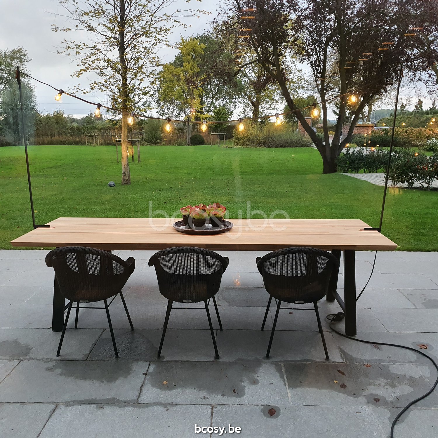 De Matteo eettafel van Vincent Sheppard tilt zomerse diners naar een nieuw niveau. Het tafelblad, gemaakt van duurzaam teak, creëert een prachtig contrast met het stevige frame van gepoedercoat staal. Dankzij de uitzonderlijke duurzaamheid van teak is de Matteo-tafel verzekerd van een lang en gelukkig leven. Maak jouw tuinfeestjes extra sfeervol door deze tafel te combineren met de Light My Table lichtslinger.