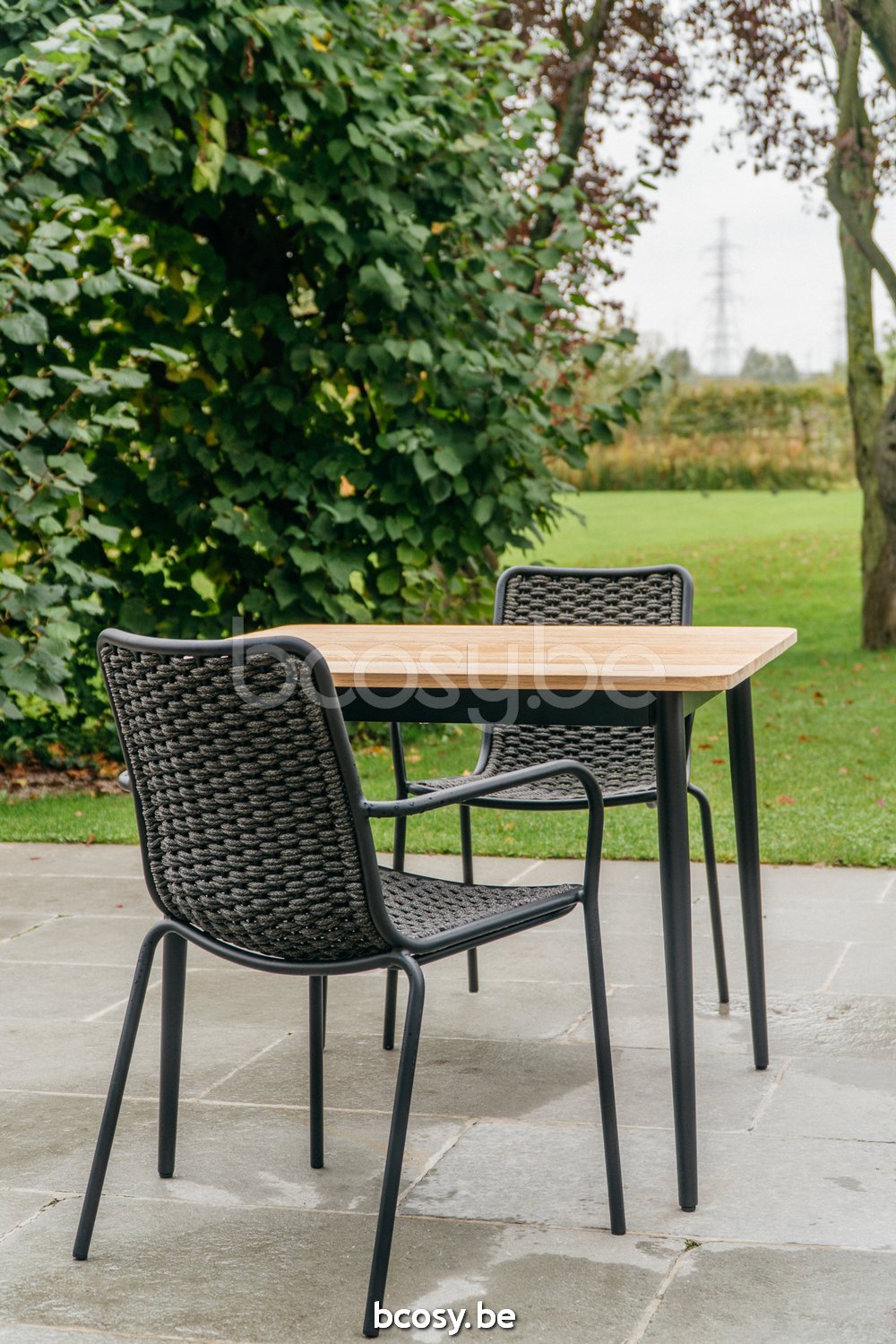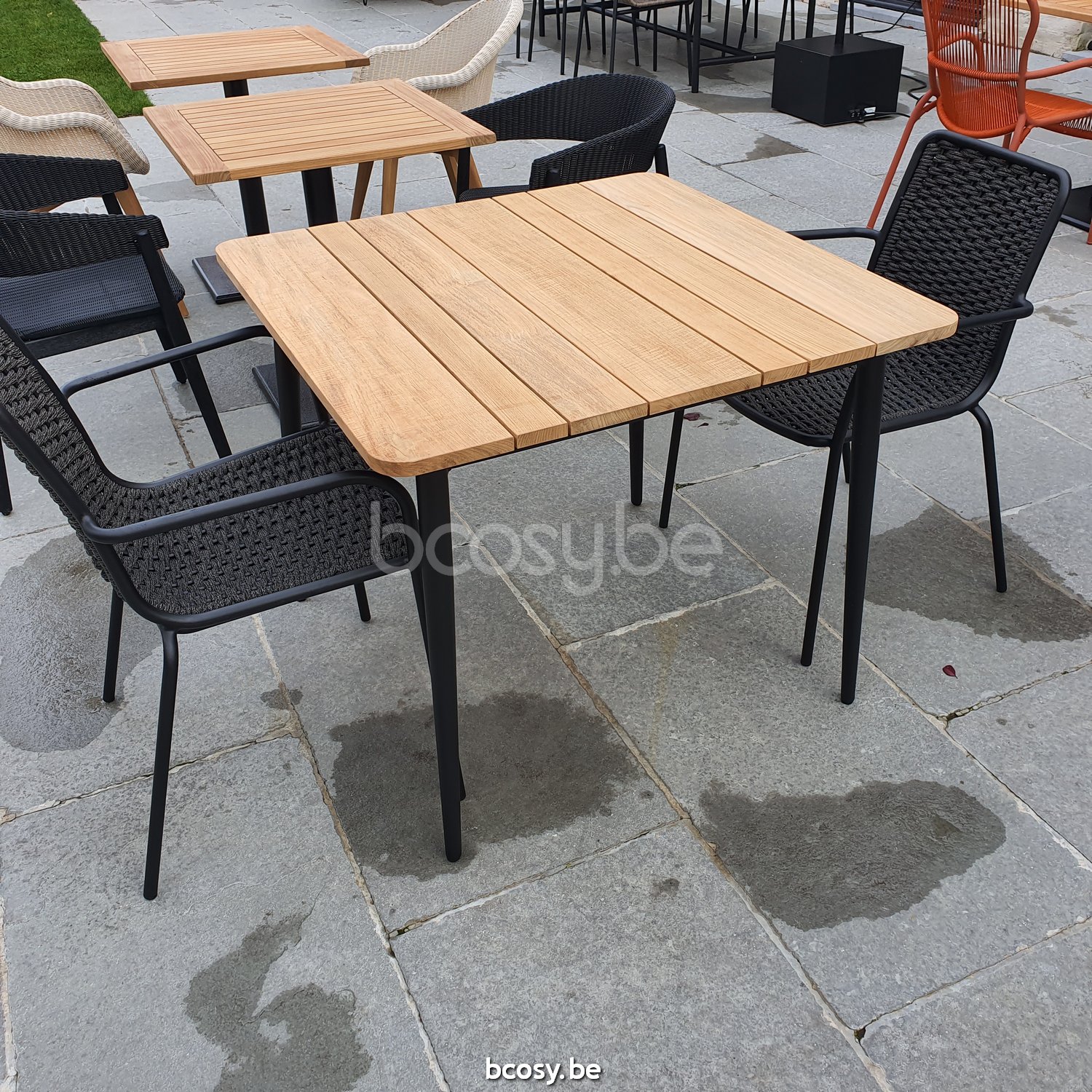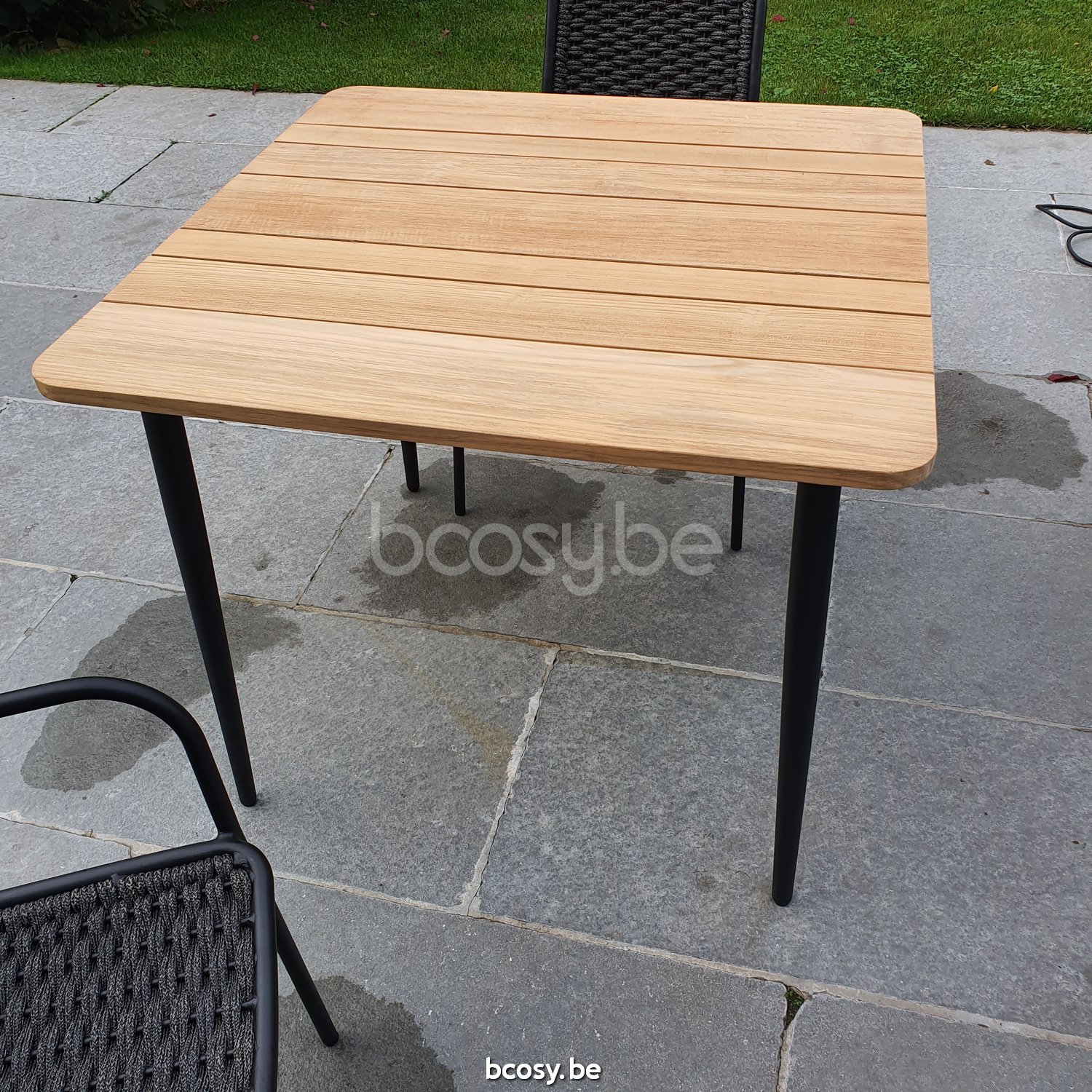Vincent Sheppard Max Tuintafel Teak Plank 90x90 Zwart Aluminium frame Onbehandeld teakhout Tafelblad. Vincent Sheppard Maks Tuintafel Teak Plank 90x90 Zwart Aluminium frame Onbehandeld teakhout Tafelblad