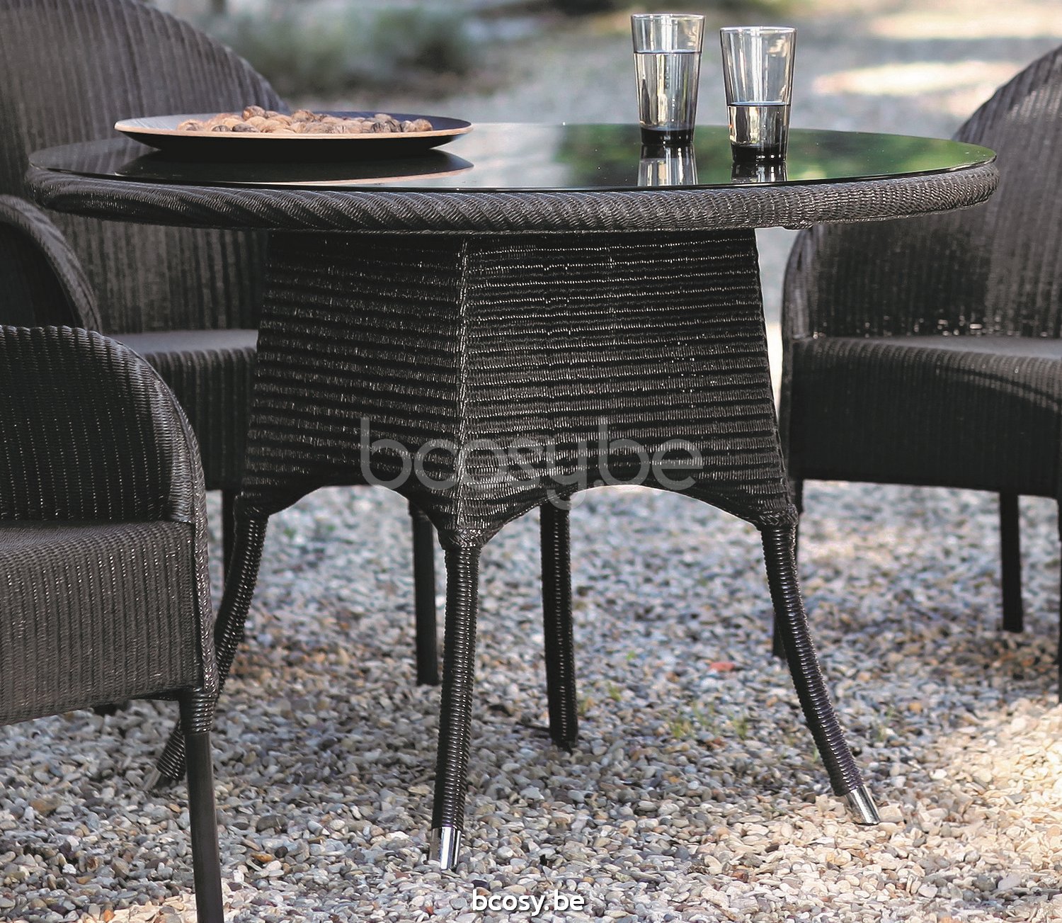 English: Vincent Sheppard Nimes Round Garden Dining Table Round Black Lloyd Loom