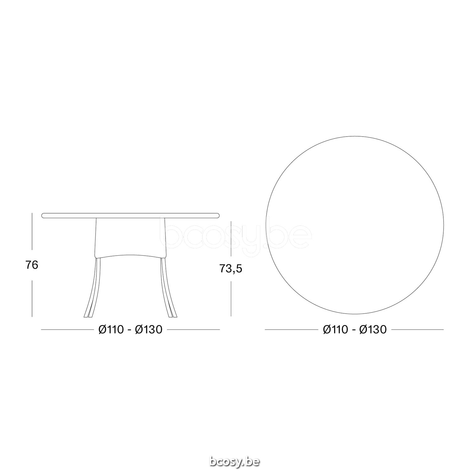 Afmetingen/Dimensions/Dimensionen: L=110 cm B=110 cm H=76 cm
