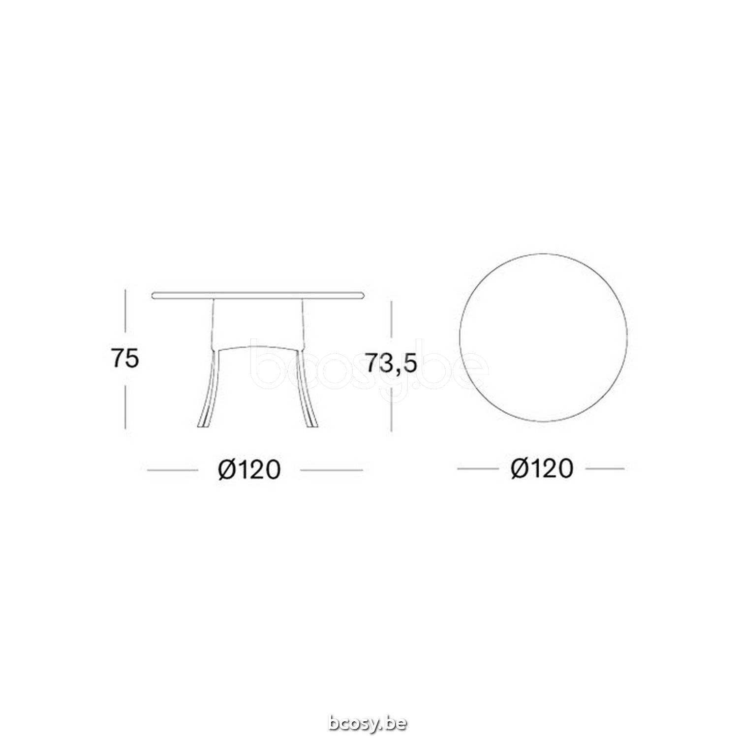 Afmetingen/Dimensions/Dimensionen: L=120 cm B=120 cm H=75 cm