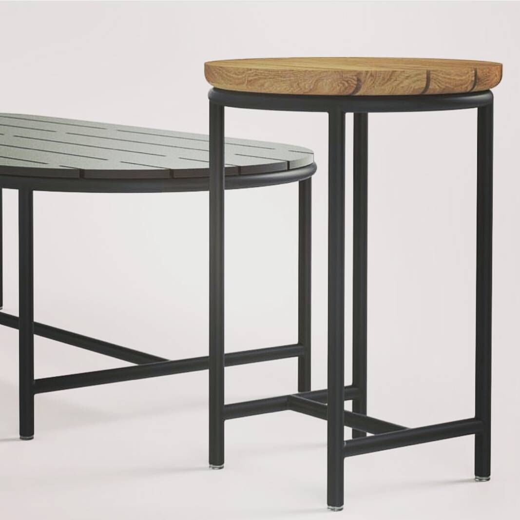 Vincent Sheppard Wicked Ronde tuinbijzettafel Rond Zwart Aluminium frame Onbehandeld teakhout Tafelblad. Vincent Sheppard Wikked Ronde tuinbijzettafel Rond Zwart Aluminium frame Onbehandeld teakhout Tafelblad