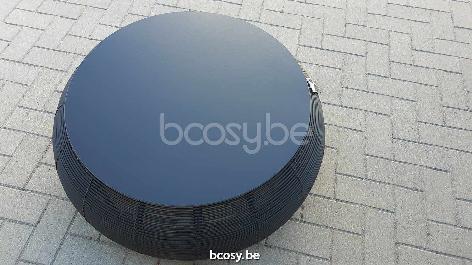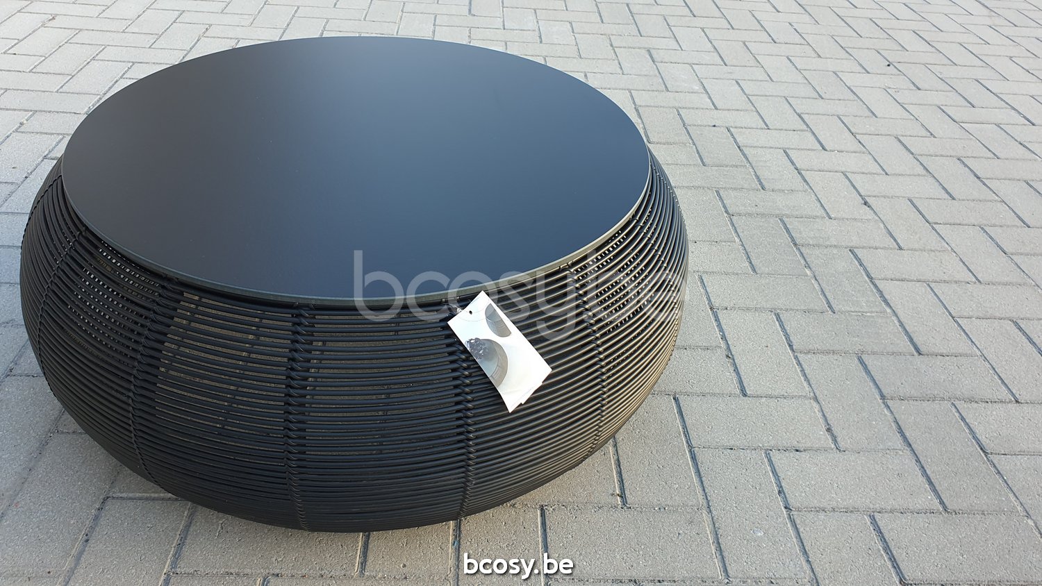 English: Vincent Sheppard Ivo Round Coffee Table Round Black Wicker-rope Polyethylene Black HPL top