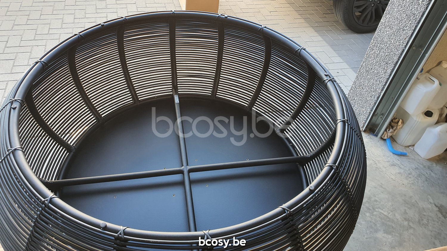 Matériel: Cadre en aluminium avec tressage HDPE et panneau HPL.