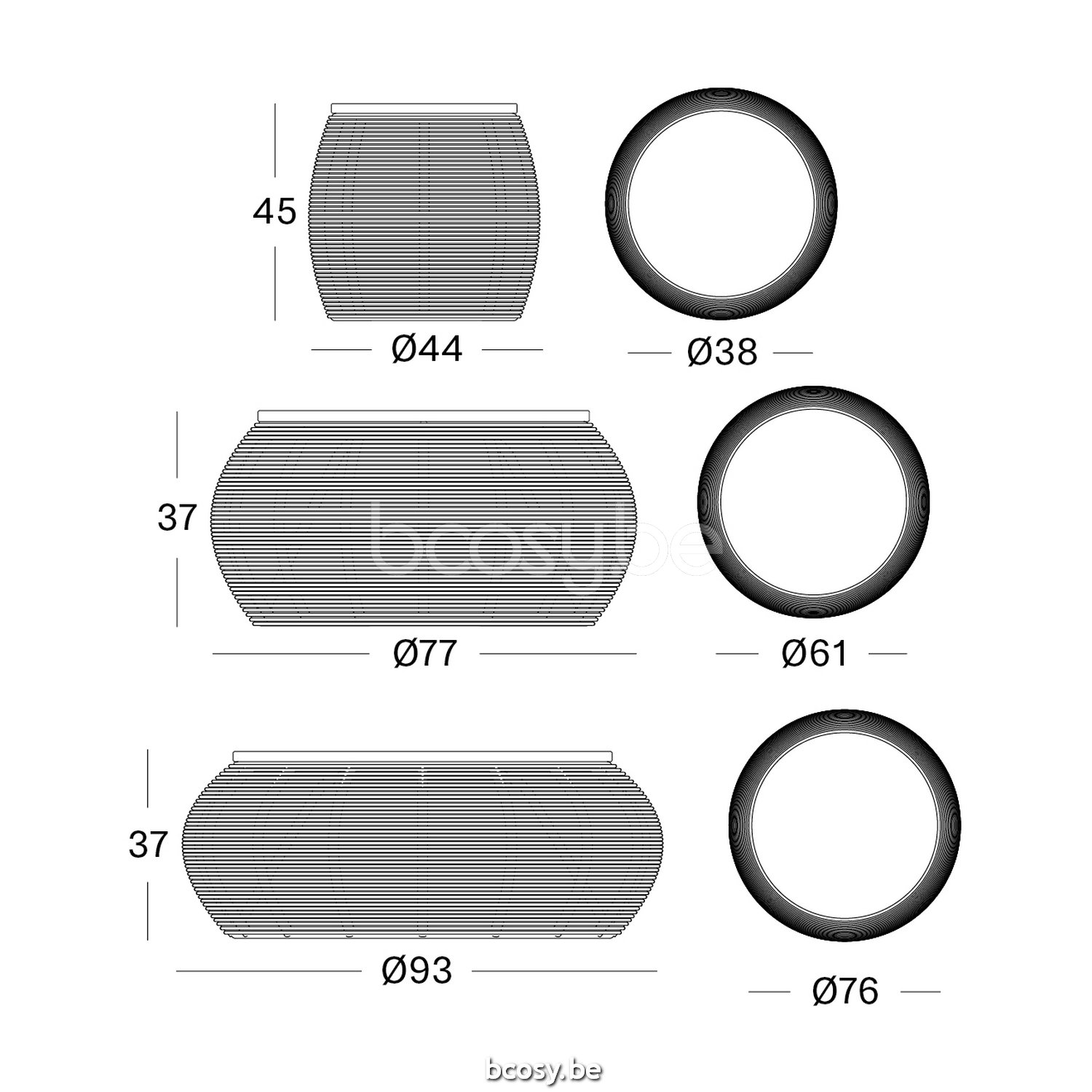 Exists in 44, 77 and 93 cm