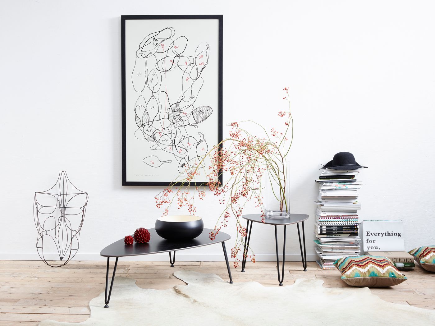 Français: Vincent Sheppard Rozy Forme plectre Table à café Cadre en Acier Noir dessus de table HPL Noir