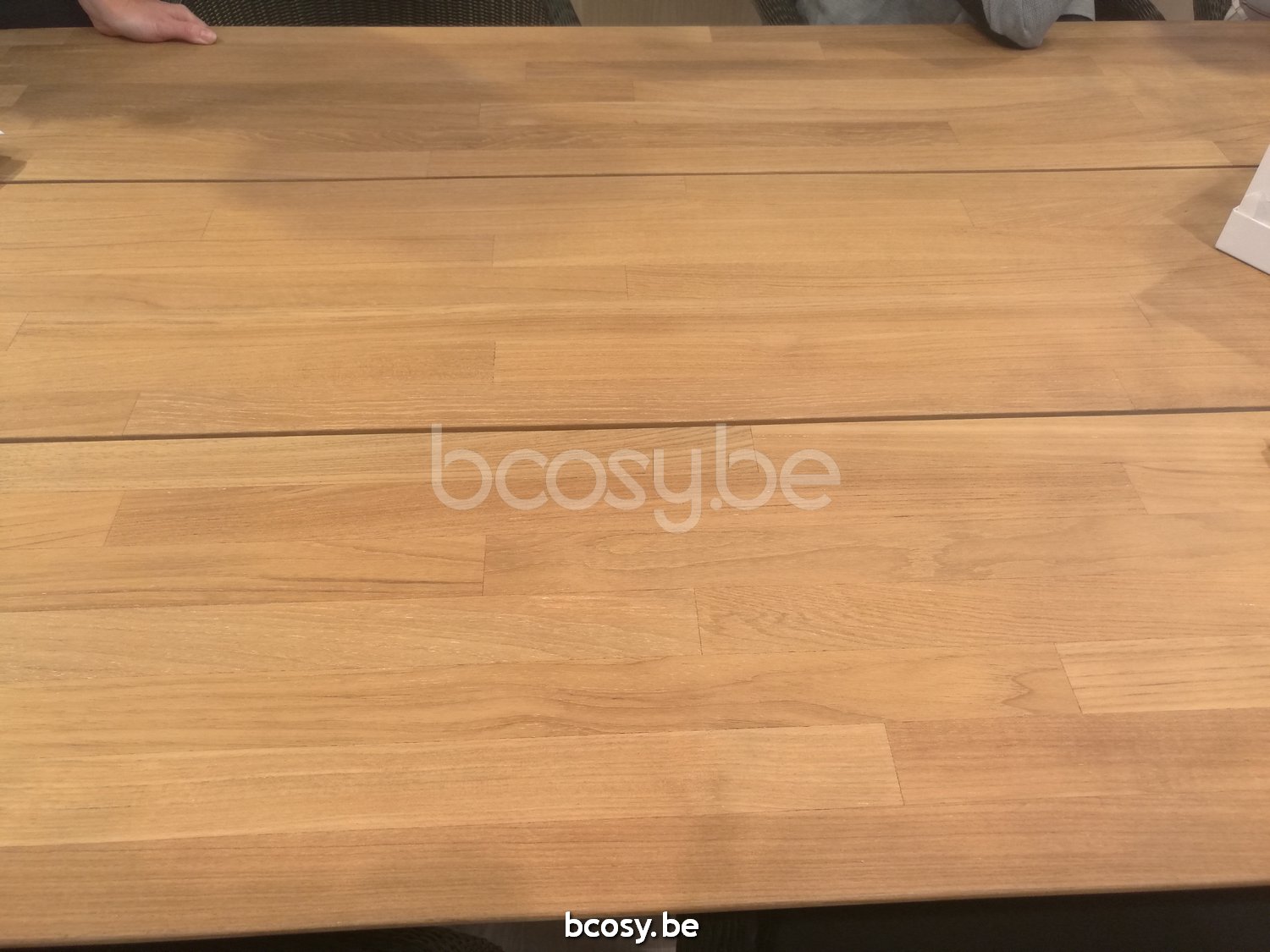 Materiaal: Aluminium frame met poedercoating en onbehandeld teakhouten blad.