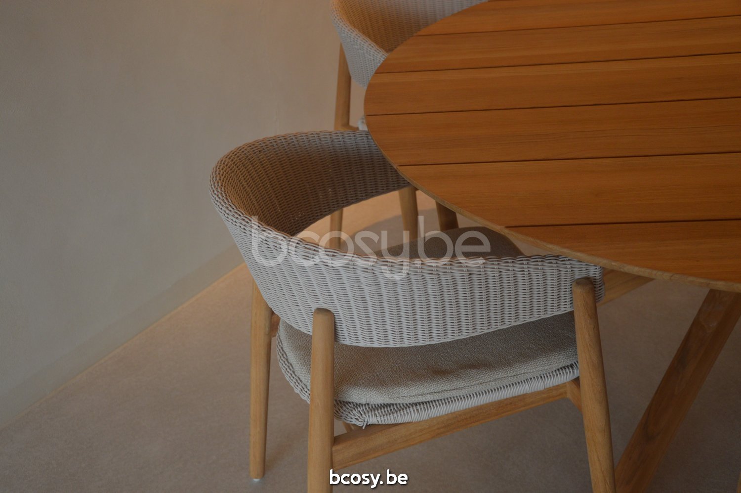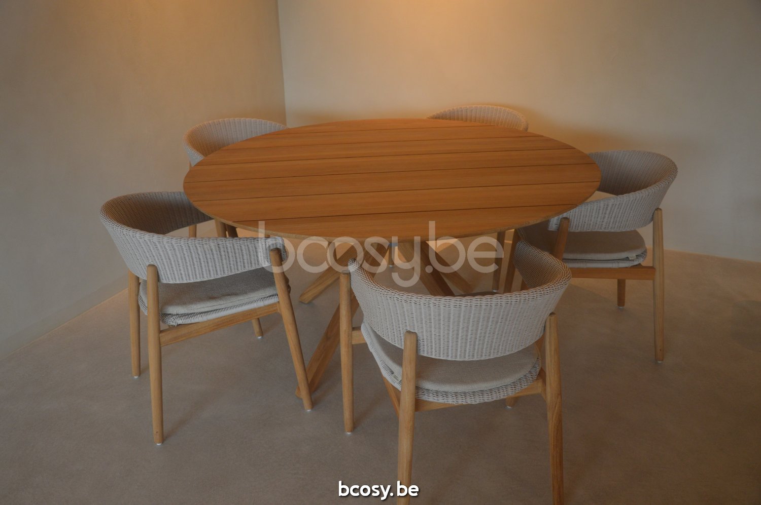 English: Vincent Sheppard Noa Round Garden Dining Table Round Untreated Teak frame Untreated Teak top