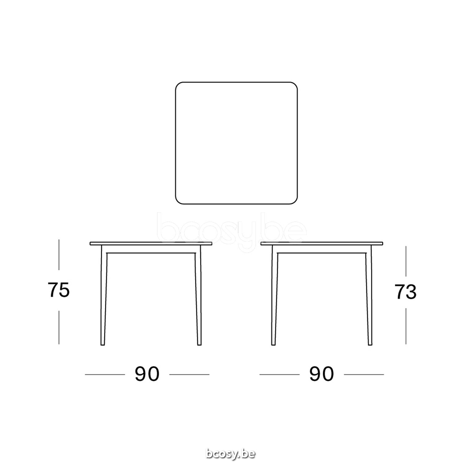 Afmetingen/Dimensions/Dimensionen: L=90 cm B=90 cm H=75/67 cm