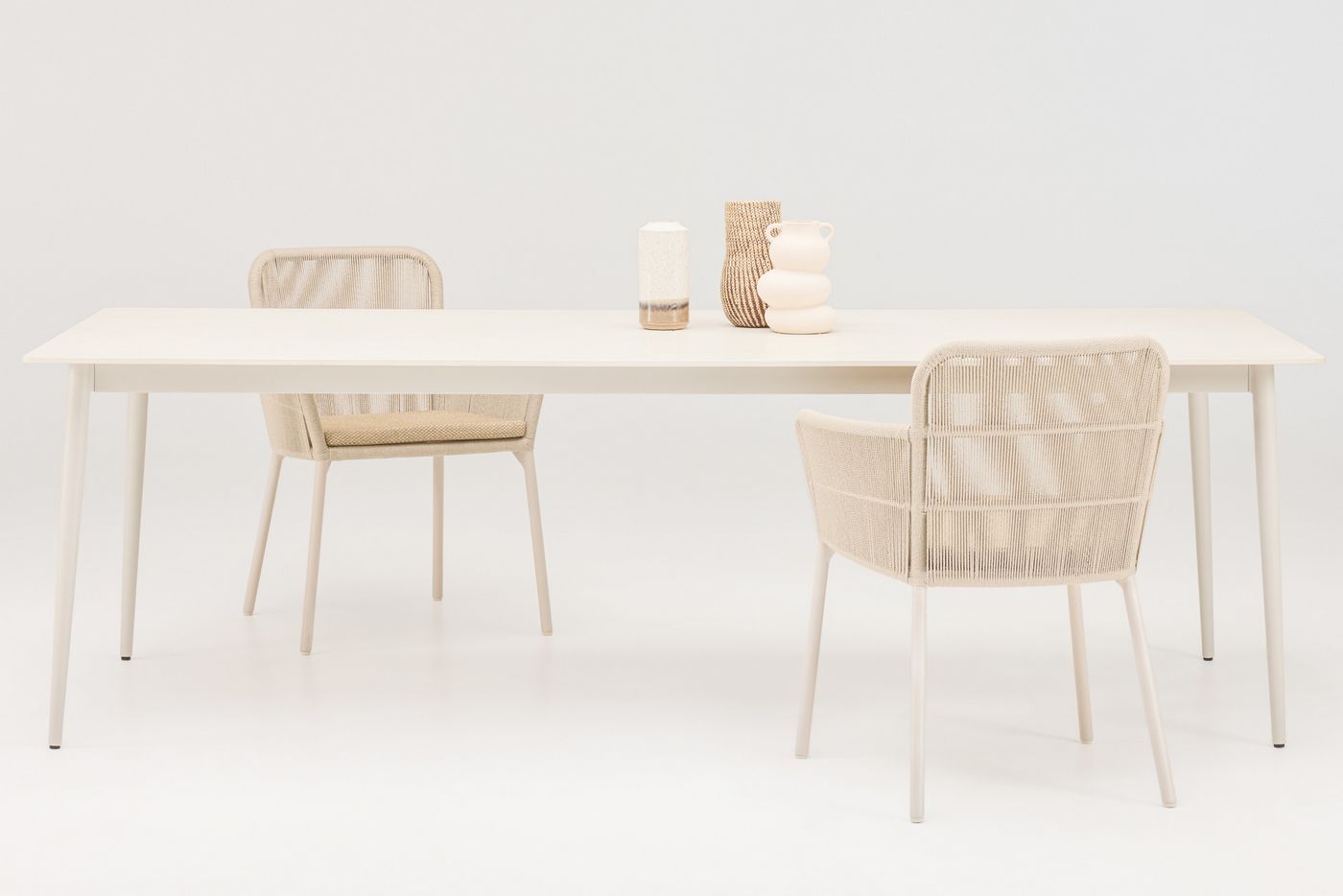 Deutsch: Vincent Sheppard Max Gartentisch Teakholzplatte 240x100 Rahmen aus Dune Weiß Aluminium Tischplatte Portland Keramik
