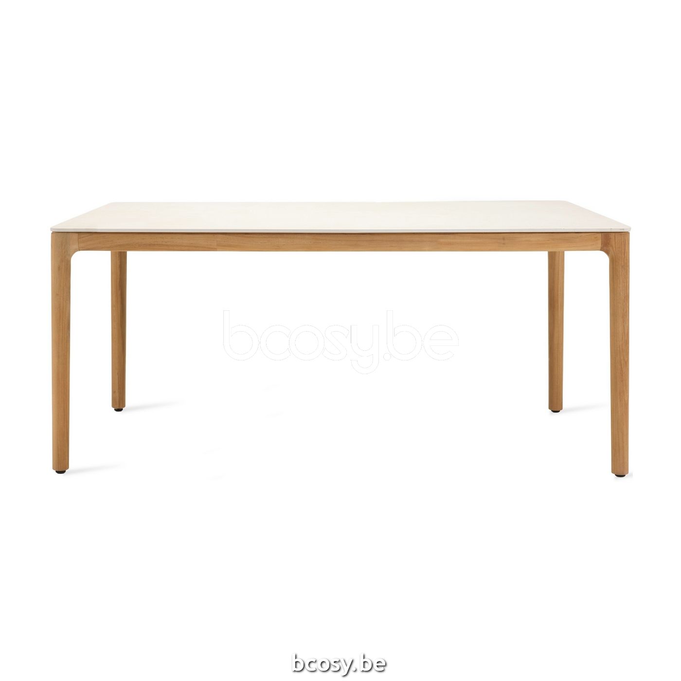 Français: Vincent Sheppard Elko 180x90 Table de Jardin Cadre en Teck non traité dessus de table Céramique Portland