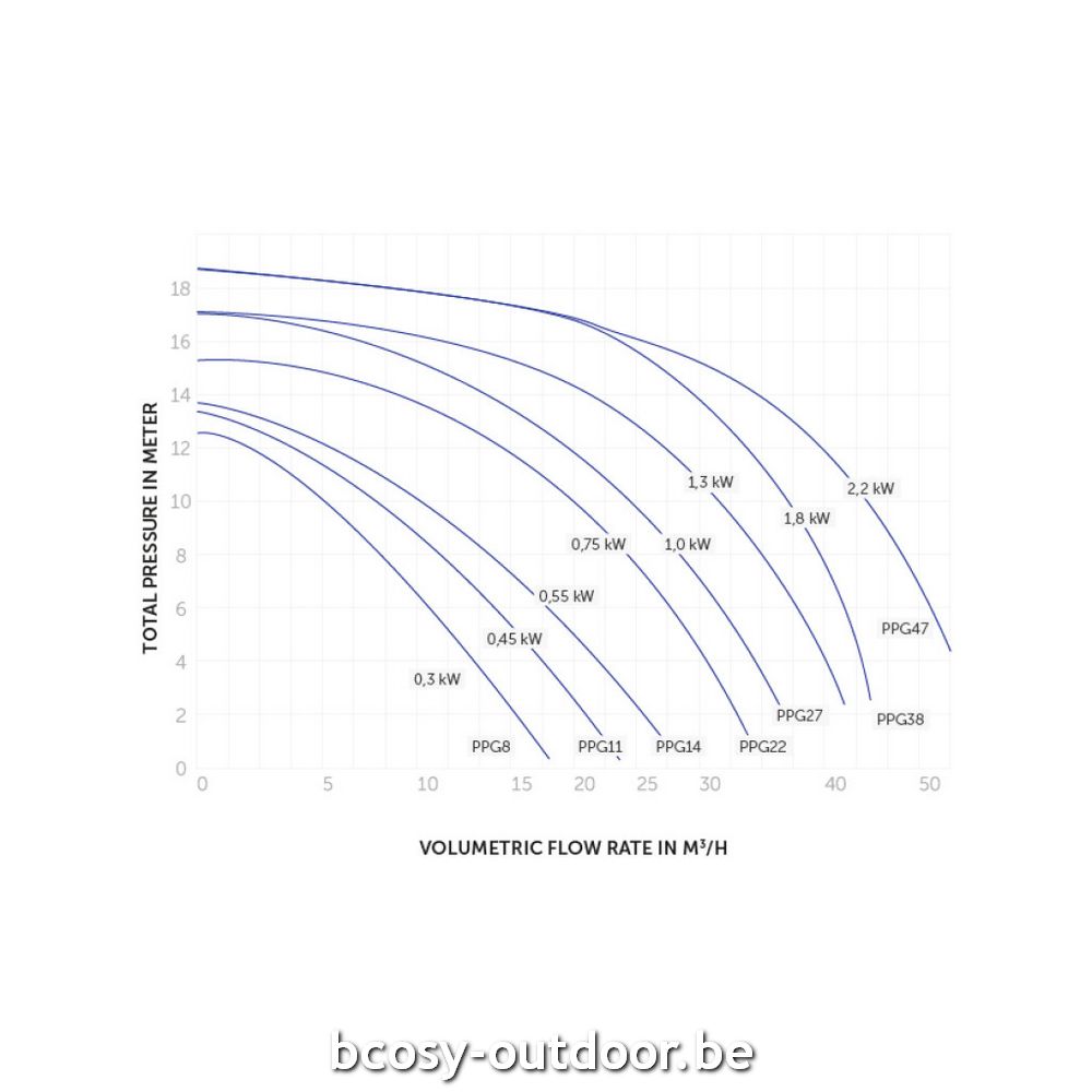 Garantie: 3 jaar garantie Fase: I Variabele snelheid: Nee Debiet (op 8m): 14 m³/h Aansluiting IN: 63 mm Aansluiting OUT: 63 mm Vermogen motor: 0.75 hp